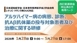2026年1月28日~2026年5月29日 【改訂前講習会申込済の方用ページ】日本認知症学会・日本老年精神医学会2学会合同, レケンビ・ケサンラ両OUG対応「アルツハイマー病の病態、診断、抗Aβ抗体薬の投与対象患者及び治療に関する研修」