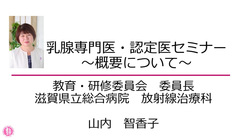 1 乳腺専門医セミナーとe-learning、 専門医セミナーの意義と概要の説明(動画)