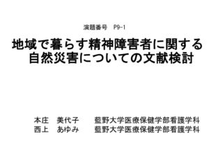 P9-1 地域で暮らす精神障害者に関する自然災害についての文献検討