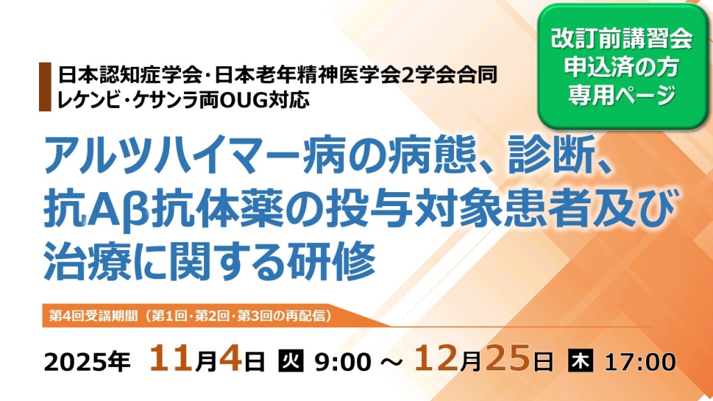 レケンビ・ケサンラ両OUG対応「アルツハイマー病の病態、診断、抗Aβ抗体薬の投与対象患者及び治療に関する研修」