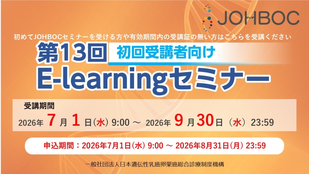 ※コンテンツは、第13回 JOHBOC E-Learning(初回受講者向け) セミナーと次回第14回とは同様の内容を予定しております。