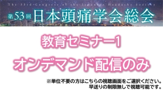 ※本ページは、第53回日本頭痛学会総会の参加登録ページではございません※ 第53回日本頭痛学会総会にて開催される「教育セミナー1」の登録ページとなります。 ご参加を希望される方は、まず総会への参加登録をお済ませいただき、その後、本ページからお申し込みください。 |